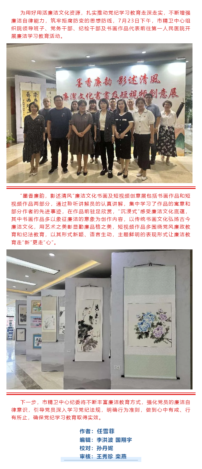 【黨建領航】築牢廉潔防線(xiàn) 涵養清風正氣——市精(jīng)衛中(zhōng)心參觀“墨香廉韻,影述清風”廉潔文(wén)化書畫及短視頻創意展